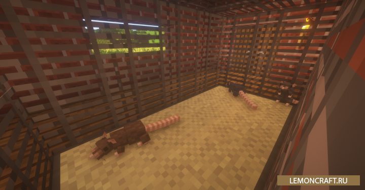 Мод на ручных крыс Rats добавит в игру новых мобов - крыс, которые спавнятся только ночью, но вы можете их приручить. Данные крысы очень опасны в неприрученном состоянии, они воруют еду, могут прогрызать дырки в блоках, благодаря своим небольшим размерам могут проходить сквозь двери и ворота. Для того, что бы их приручить достаточно покормить их сыром. После этого они начнут таскать вам различные вещи и защищать вас от враждебных мобов.